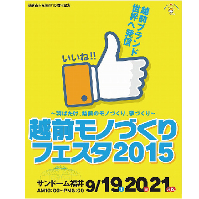 越前モノづくりフェスタで、風味絶佳 ECHIZEN を展示、販売します。 2015-09-15 日時 9月19,20,21日 (土、日、月)10:00~17:00 場所 サンドーム福井 福井県越前市瓜生町5-1-1 tel 0778-23-2020